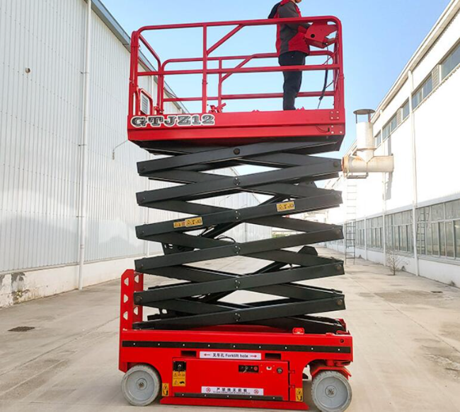 2. 自行式:使用人员可以不用下升降台,就可控制机械升降并且行驶到其他的工作地点,自身具有行走及转向驱动功能,不需人工牵引,不需外接电源,移动灵活方便。